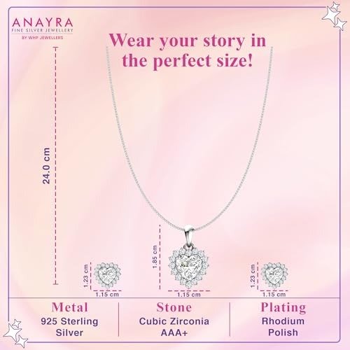 - Style & Elegance: Enhance your fashion sense with the exquisitely designed ANAYRA Sterling Silver Heart Solitaire Pendant Set for Women, available from WHP JEWELLERS. How do the delicate details and sophisticated appearance of the 8.08g 23 CM 925 Sterling Silver Pendant Set contribute? They seamlessly merge traditional craftsmanship with contemporary style, providing a versatile accessory that pairs beautifully with any ensemble. This is the ideal fashion jewelry for women who value exceptional artistry and enduring beauty in their adornments.