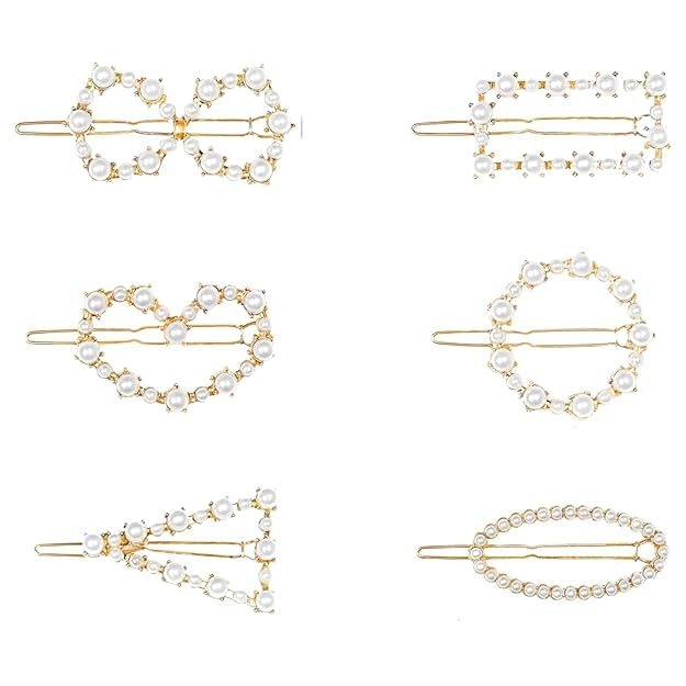 ANNACREATIONS Korean Style Gold Metal Pearl Geometric Stone Lock Hair Pins Hair Clip Hair Accessories Jewellery for Women And Girls (6 PCS) – Fast Shipping to USA & Canada