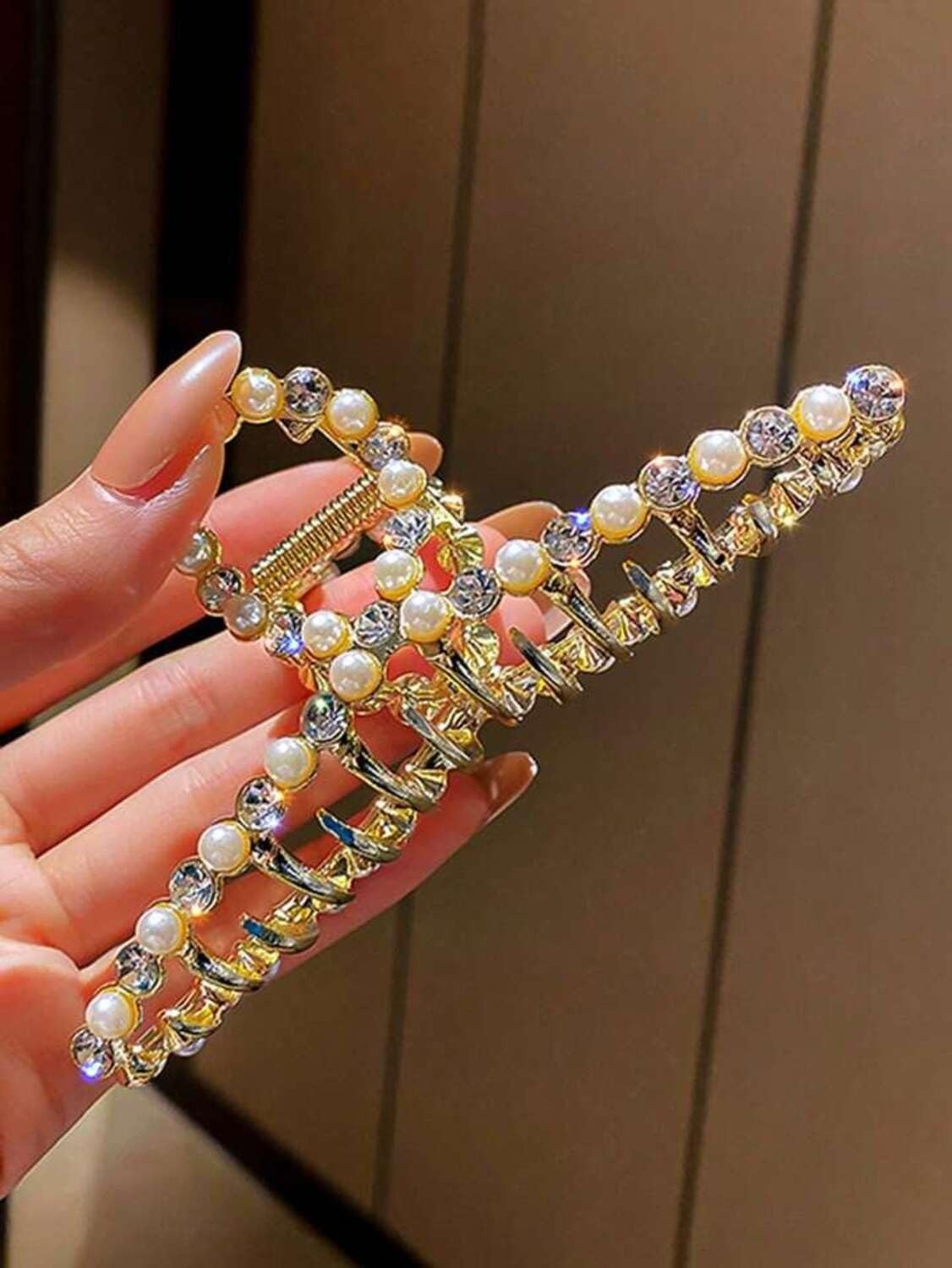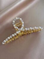 - Crafted from high-quality materials, our pearl rhinestone metal hair claw is designed for exceptional durability and enduring elegance.