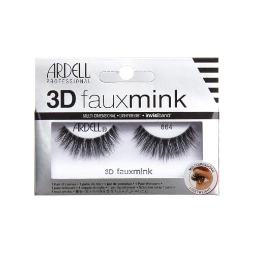 Ardell 3D Faux Mink 864 Multi-Dimensional False EyeLash, Soft, Feathery Black Fibers, Slightly Rounded, Lash Style, Secure, Knot-Free Invisiband Eyelash for Women – Fast Shipping to USA & Canada