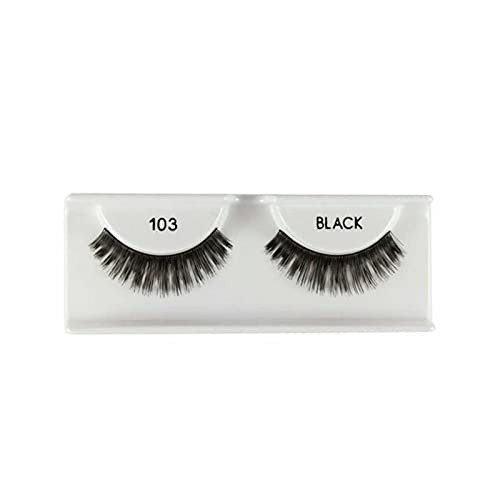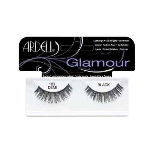 Ardell Glamour Lash 103 Black eyelashes are perfect for adding a touch of drama, especially if you have large or round eyes. These lashes are reusable, easy to apply, and give you that long, glamorous lash look you?re after.