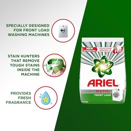 - Ariel Matic Detergent Powder delivers exceptional cleaning results in a single wash. It effectively removes stubborn stains such as tea, coffee, and tomato. This detergent has been specifically formulated for front-loading fully automatic washing machines.