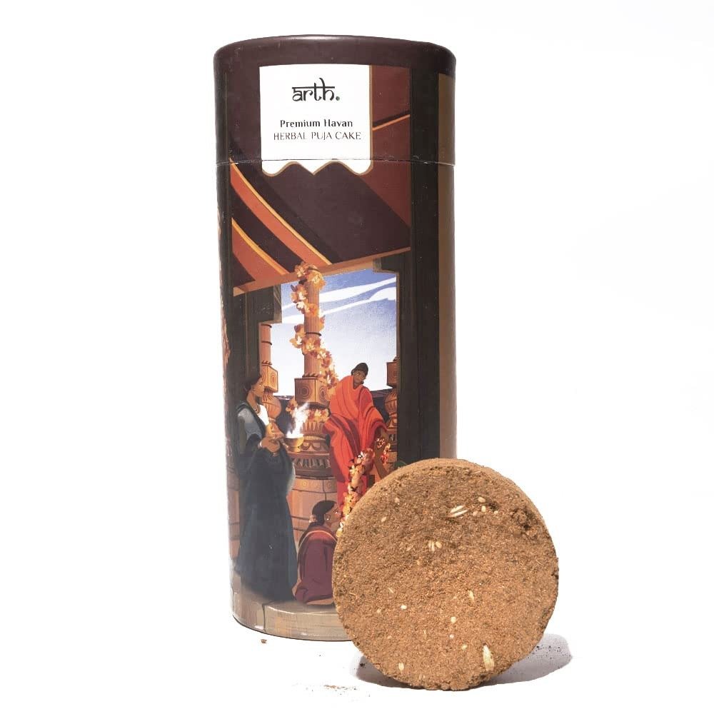 Arth Premium Havan Herbal Puja Cake | Panchgavya Havan Tikki for Puja | Gir cow’s panchgavya | Made Using Ayurvedic Herbs | Cow Dung cakes for hawan Havan Cake (Pack of 1) – Fast Shipping to USA & Canada
