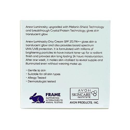 Avon Anew Luminosity Day Cream SPF 20| Melanin Shield Technology + Green Coffee Oil + Niacinamide | Protection from UVA/UVB Rays I Reveal Radiant Skin I 50 g – Fast Shipping to USA & Canada