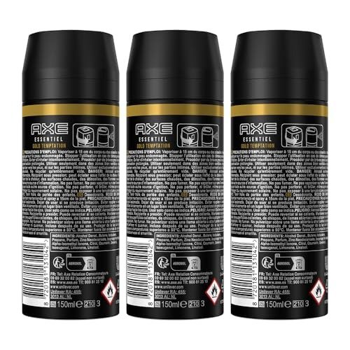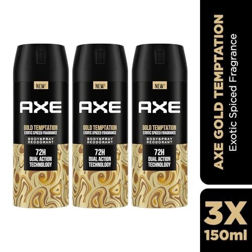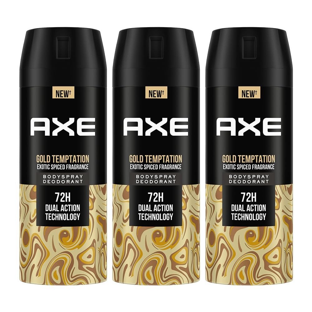 Axe Gold Temptation Long Lasting Deodorant Bodyspray For Men 150 ml, Pack of 3 – Fast Shipping to USA & Canada