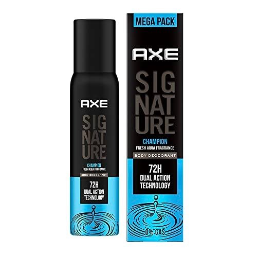Presenting the Signature Champion Deodorant by AXE. AXE provides an extensive selection of enduring fragrances, gas-free perfumes, and male grooming essentials, making it your ultimate companion for everyday grooming. These gas-free perfumes are crafted with 72HR Dual Action Technology, ensuring you remain fresh, smell fantastic, and enjoy long-lasting odour protection. Now you understand why AXE is the ideal choice for your daily grooming routine. The journey to success may be challenging, but true champions never back down! Overcome every hurdle on your path to the top with AXE Signature Champion gas-free Body Deodorant for Men. Infused with vibrant notes of Lemon, Mandarin, and refreshing Aqua, this fragrance is unparalleled, just like you! Additionally, it contains 0% gas, contributing to its invigorating sensation. For application, hold the can upright approximately 15 cm from your body. Spray onto your chest, neck, and other pulse points to ensure the scent lingers. It?s that simple and effortless to smell your best. AXE?s long-lasting deodorants feature a Zinc formula that boosts odour protection. Plus, they are completely safe to apply directly to the skin, as they contain no parabens or dyes. With the new collection of AXE deodorants for men, you have the ultimate wingman at your side. Choose from AXE Intense, Dark Temptation, Mysterious, and many more. Select your favorite now!