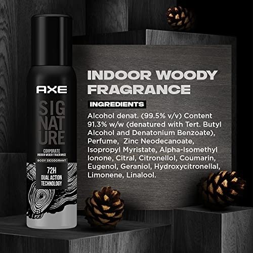 Infused with the sophisticated aromas of Cashmere wood, Cedarwood, and Pimento berries, the AXE Signature Corporate no-gas body deodorant for men exudes elegance and lasting intensity, much like the quintessential executive. Additionally, this long-lasting deodorant contains 0% gas, contributing to its refreshing sensation.