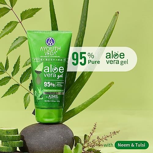 Ayouthveda Aloe Vera Gel, enriched with the powerful combination of Tulsi and Neem, serves as a nourishing powerhouse. The natural properties of Aloe Vera hydrate and soothe the skin while also fortifying and imparting a radiant shine to your hair. All Ayouthveda products are free from sulfates, silicones, GMOs, parabens, and petroleum, and are vegan and dermatologically tested.