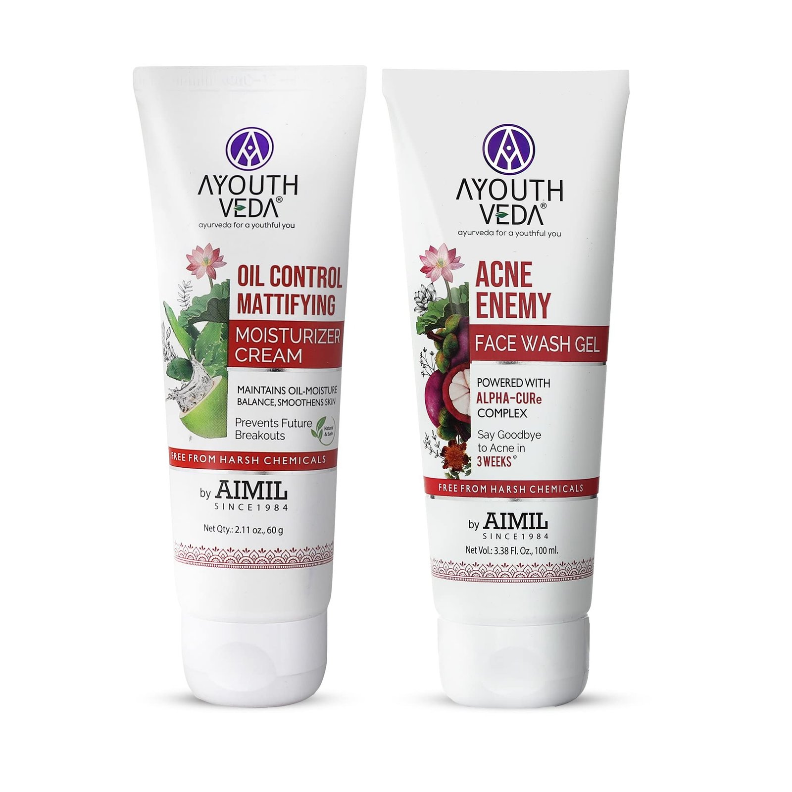Ayouthveda Facecare Kit for Nourishes Skin, Purifies Decongested Pores – Acne Enemy Face Wash Gel (100ml) | Oil Control Mattifying Moisturizer Cream for Acne Prone Skin Dullness(60g) – Fast Shipping to USA & Canada