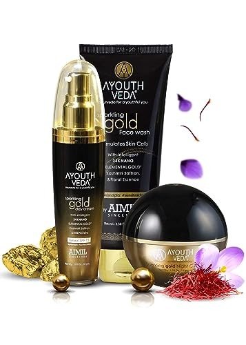 Ayouthveda Sparkling Gold Gift Pack | Sparkling Gold Face Wash, Sparkling Gold Night Cream & Sparkling Gold Day Cream | for Glowing, Even Toned & Healthy Skin | Daily Skincare Routine (Pack of 3) | Valentine Giftset – Fast Shipping to USA & Canada