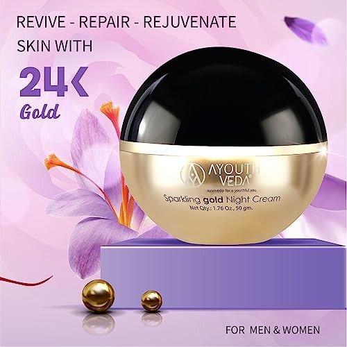 • Enhances skin tone and features genuine 1000 ng of 24k gold per ml, combined with Kashmiri saffron. This pure elemental gold deeply penetrates the skin, rejuvenating its firmness and revitalizing the damaged skin matrix with abundant nourishment. It fosters a natural glow while you sleep.