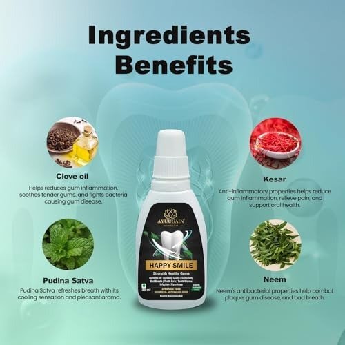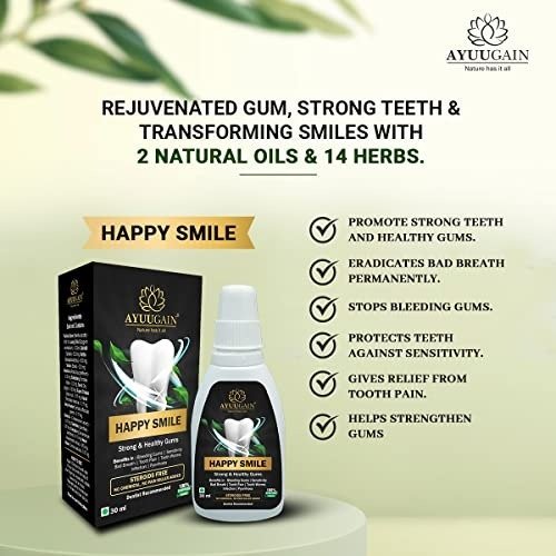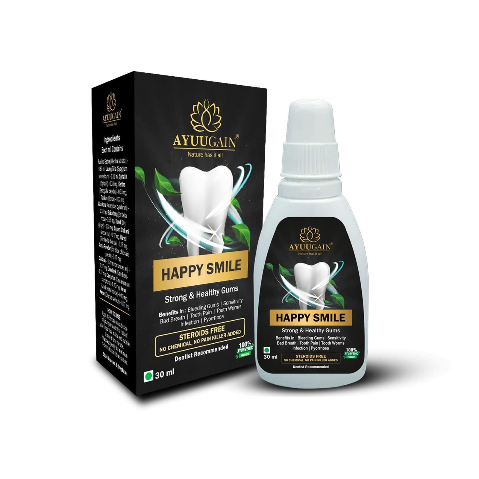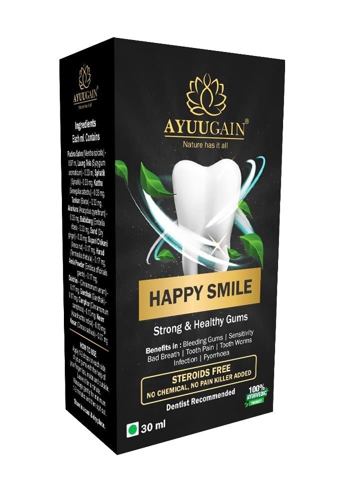 AYUUGAIN Happy Smile Gum Paint Herbal for Bleeding Gums, Bad Breath, Toothache, Strong Teeth, Sensitivity & Gum Pain Relief with Laung Oil (Clove), Pudina Satva | Protect Daily Gum Problems Naturally – Fast Shipping to USA & Canada