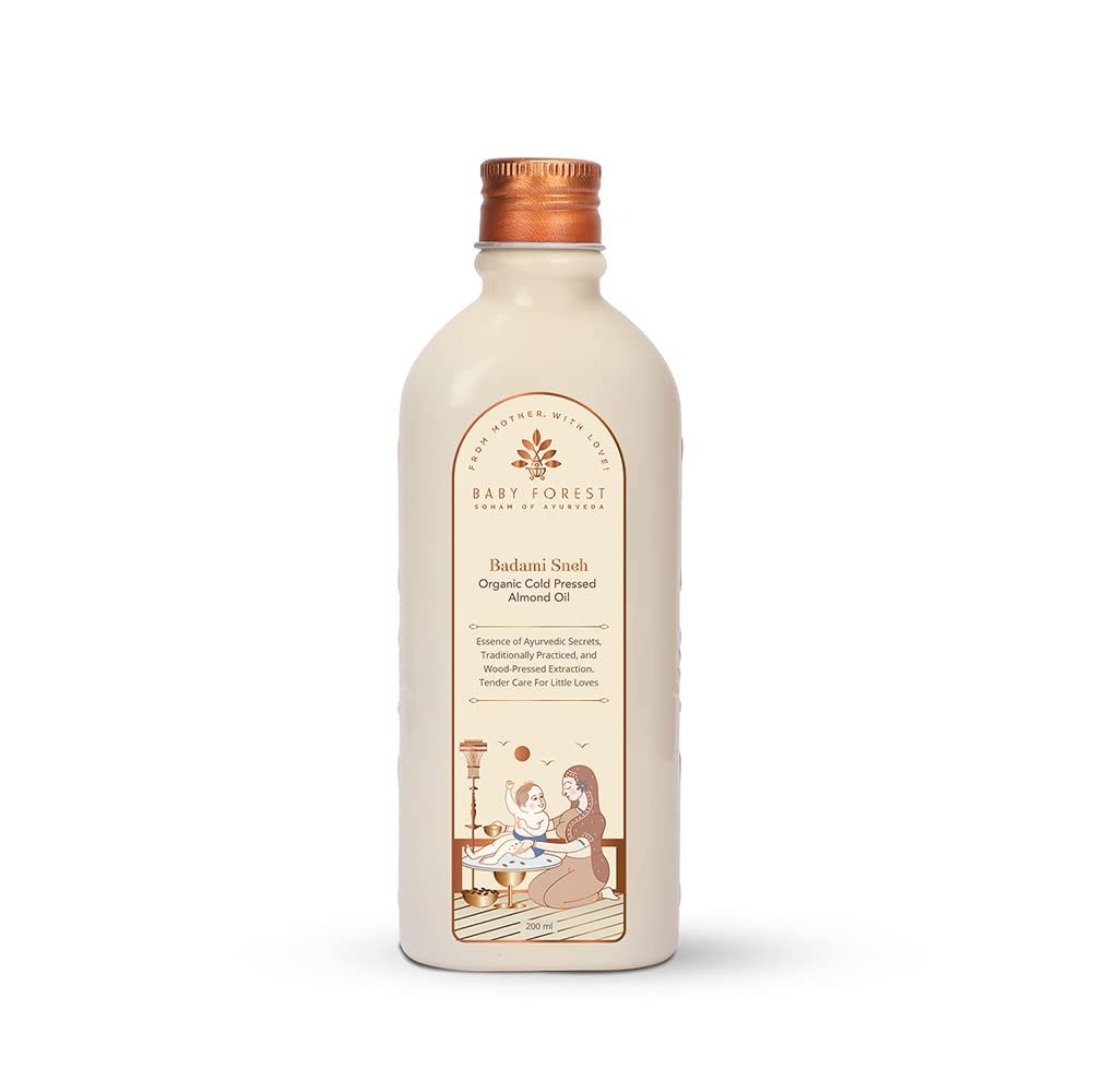 Baby Forest Badami Sneh Organic Cold Pressed Almond Oil | Derma safe | Cold Pressed Almond Oil for All Types of Baby Hair & Skin | BPA & Cruelty-Free | 200 ml – Fast Shipping to USA & Canada