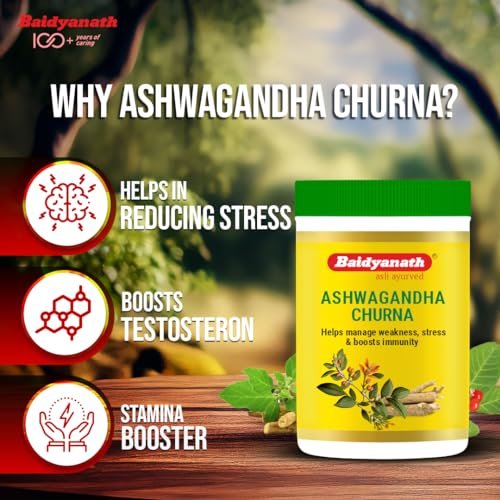 - ENERGY ENHANCER: Baidyanath Ashwagandha Churna contains active compounds such as withanolides that elevate energy levels. This potent medicinal herb significantly enhances energy, strength, and stamina.