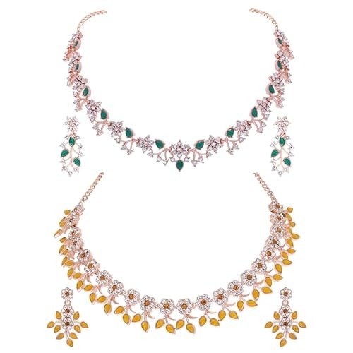 - Sales Package: Set of 2 Rose Gold Polished AD Stone-Studded Choker with Coordinating Earrings
