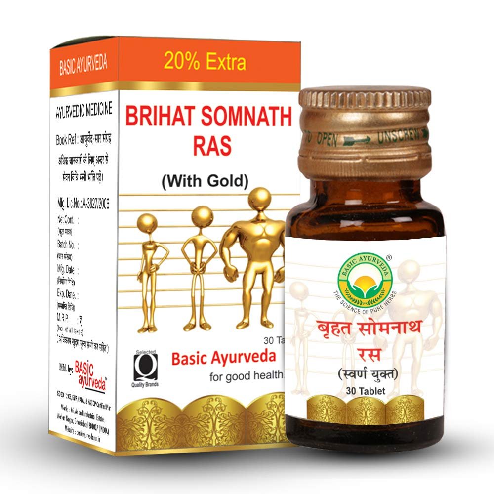 BASIC AYURVEDA Brihat Somnath Ras With Gold 30 Tablets | – Fast Shipping to USA