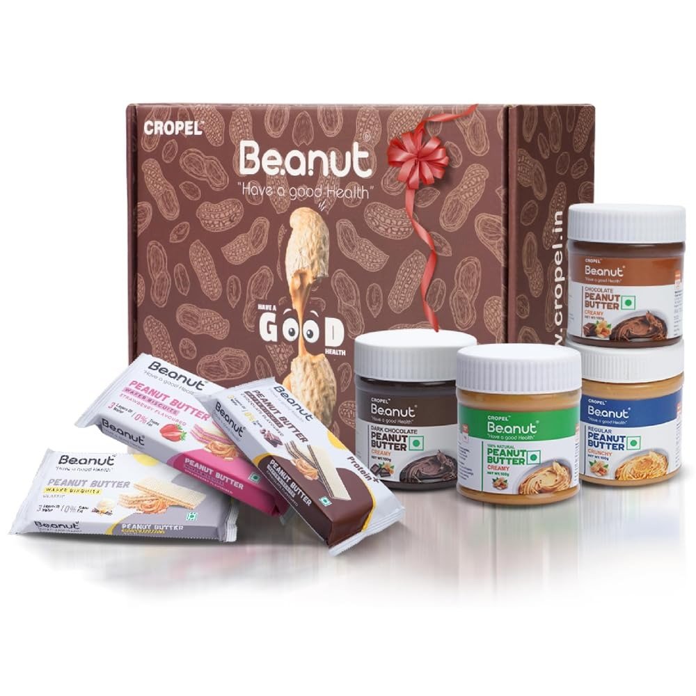 Beanut | Peanut Butter and Peanut wafer Gift set | High Protein, Gluten-Free, Healthy Breakfast | 4×100 gm Peanut jar each and 3 x wafer Biscuit – Fast Shipping to USA & Canada