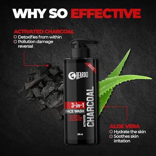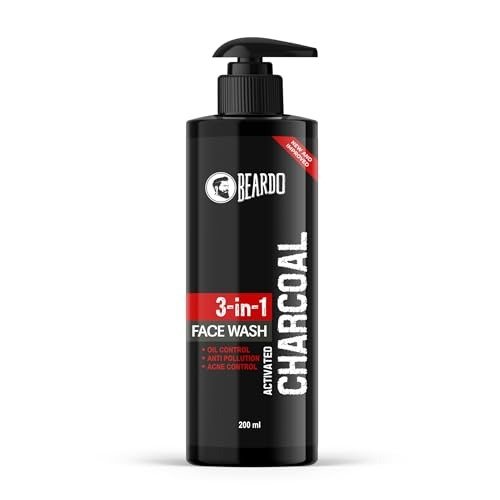 Beardo 3-in-1 Activated Charcoal Face Wash| Deep Cleanse, Exfoliate & Detoxify | All-in-One Face Wash for Oily Skin, Dirt & Pollution Removal | Oil Control Face wash for men 200ml – Fast Shipping to USA & Canada