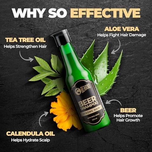 Beardo Beer Shampoo for Men, 200 ml | For Strong, Bouncy, Shiny Hair | Contains Real Beer | Tea Tree Oil, Aloe vera & Calendula Oil | Sulphate & Paraben Free – Fast Shipping to USA & Canada