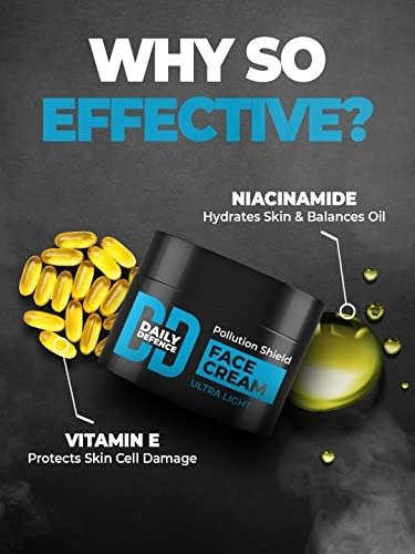 - DAILY POLLUTION DEFENSE ? Pollution poses a significant threat, and safeguarding our skin is essential. That’s why we present our Daily Defence Face Cream, infused with powerful components like Niacinamide and Vitamin E. These elements serve as a barrier, shielding your skin and aiding in the battle against damage caused by pollution.