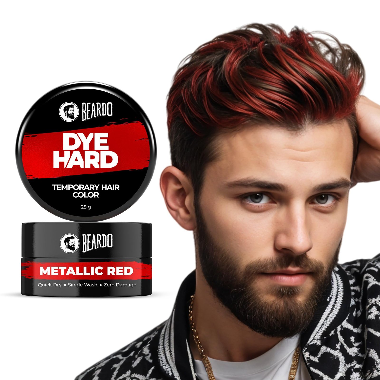 Beardo Dye Hard Temporary Hair Color – Metallic Red, 25g | Temporary 1-Day 1-Wash|DIY Instant Hair Color Makeup for Men| No Bleach | No Ammonia | No Damage – Fast Shipping to USA & Canada