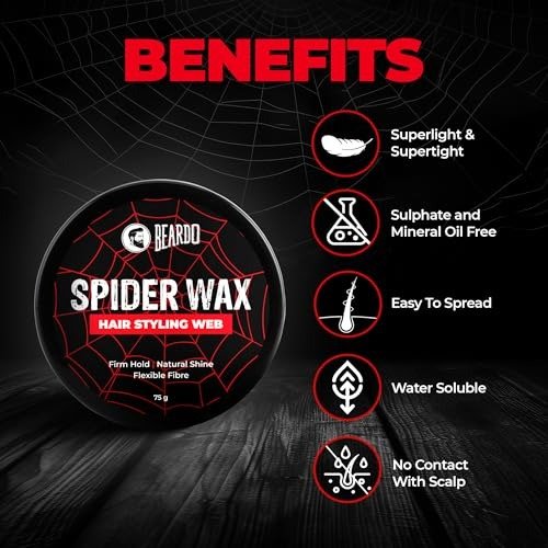- BEARDO ENDORSED: The Male Grooming Specialists present the Beardo Spider Wax, designed to provide volume, texture, and a robust hold without leaving any residue. Crafted from the finest and safest ingredients, you can anticipate nothing less than excellence from a brand dedicated to elevating your style.