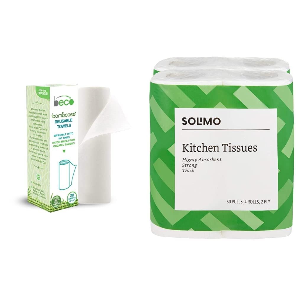 Beco Reusable Kitchen Towel Roll (20 Sheets) Natural & Organic Cleaning Bamboo Cloth Ecofriendly and BiodegradableAmazon Brand – Solimo 2 Ply Kitchen Tissue Paper Roll – 4 Rolls (60 Pulls Per Roll) – Fast Shipping to USA & Canada