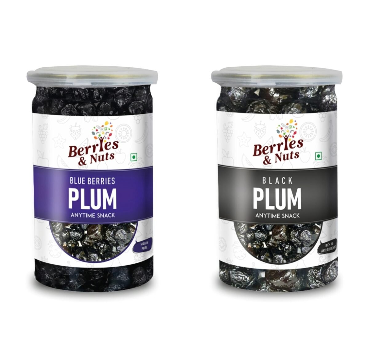 Berries And Nuts Premium Dried Blueberries Plum & Dried Black Plum Combo | Dried Blueberries Plum 250 Grams and Dried Black Plum 250 Grams | 500 Grams – Fast Shipping to USA & Canada