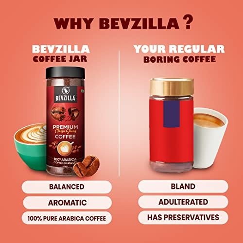 - ? Bevzilla Coffee powder is crafted from 100% pure Arabica beans, ensuring a consistently smooth, delightful, and frothy cup of coffee with each brew.
