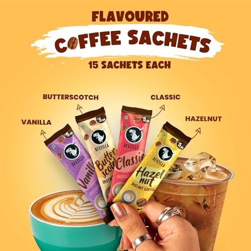 - ? Savor the authentic richness of 100% Pure Arabica Beans with Bevzilla Coffee Powder Sachets, offered in four delectable flavors: English Butterscotch, Colombian Gold, French Vanilla, and Turkish Hazelnut.