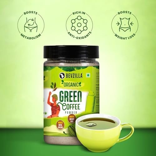 Bevzilla Green Coffee Beans Powder – 200 Grams | For Weight Loss With Chlorogenic Acid | Immunity Booster| Natural Super Drink – Fast Shipping to USA & Canada