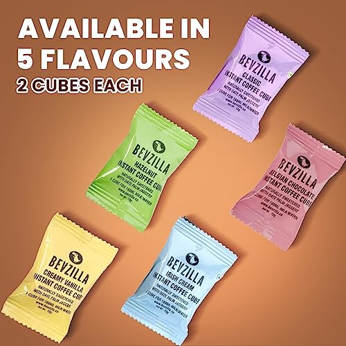 Bevzilla Instant Coffee Cubes & Bottle Pack With 10 Coffee Cubes (2 Cubes Each Flavour) | Hazelnut, Classic, Belgian Chocolate, Irish Cream & Creamy Vanilla | BPA Free Shaker 500 Ml Leak Proof – Fast Shipping to USA & Canada