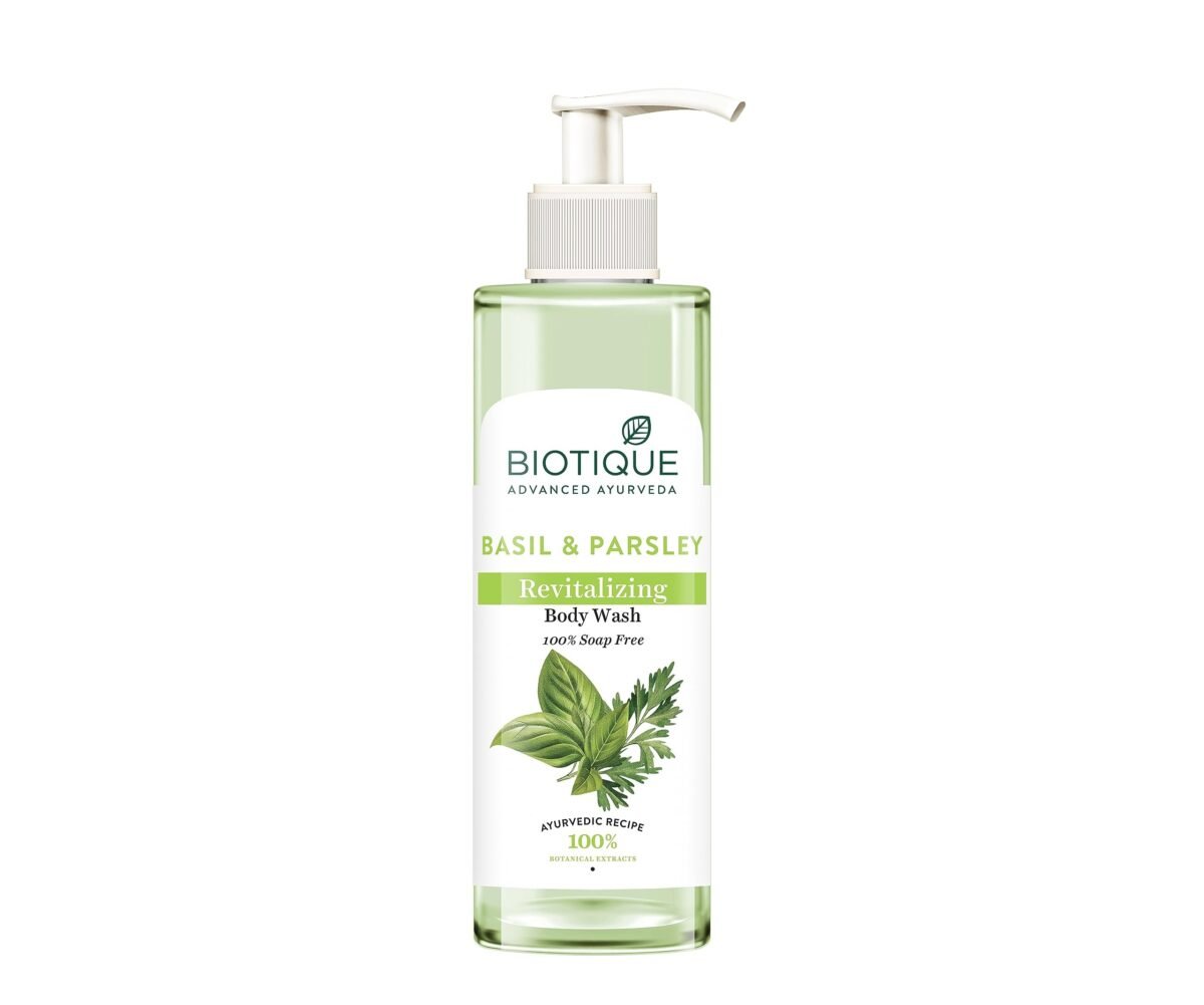 Biotique Basil & Parsley Revitalizing Body Wash is an invigorating and purifying body cleanser, designed to delicately eliminate impurities while preserving the skin’s natural pH balance. Its 100% soap-free formula ensures a gentle yet effective cleanse.