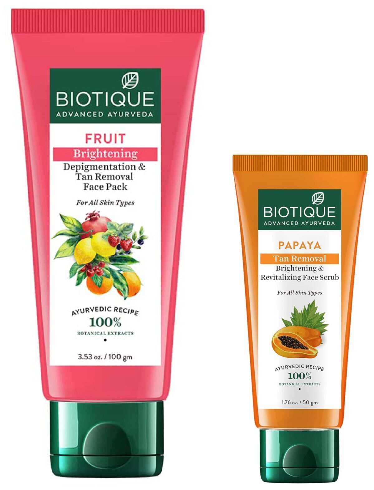 Biotique Papaya Tan Removal Brightening & Revitalizing Face Scrub & Biotique Fruit Brightening Depigmentation and Tan Removal Face Pack – Fast Shipping to USA & Canada