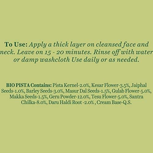 Biotique Bio Pistachio Ageless Nourishing and Revitalizing Face Packis a deeply nourishing and revitalizing blend of pure pistachio, saffron, almond and lentil seed oils to nurture, rejuvenate and revitalize your skin and deliver a radiantly ageless complexion. The pure Pistachio extract lightens dark spots and blemishes and makes your skin totally flawless and fair.