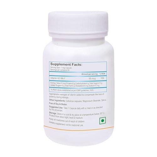 - Stronger Bones: Vitamin K2 enhances your body’s ability to transport calcium efficiently. Biotrex Nutraceuticals offers 55 mcg of Vitamin K2 ? MK7 capsules, which support calcium density in bones, promoting their strength and overall health.