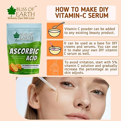 Bliss of Earth Ascorbic Acid Powder Pure Food Grade Vitamin-C Rich Powder boost immunity, Skin,face, Cosmetic & DIY Products 226GM – Fast Shipping to USA