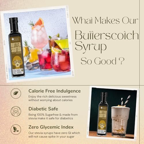 - DIABETIC-FRIENDLY: With a glycemic index of zero, our butterscotch syrup for cakes is a safe and tasty choice for those aiming to regulate their blood sugar while still enjoying sweet treats.