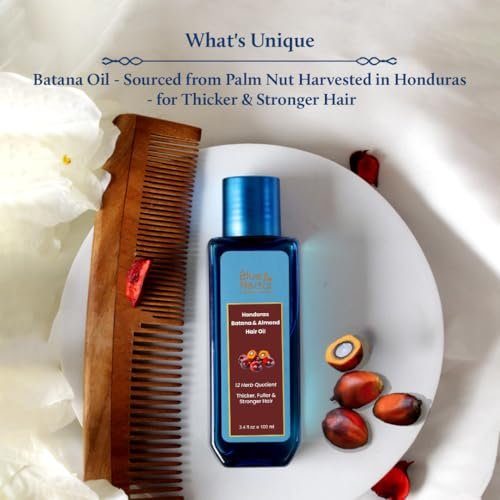 Blue Nectar Batana Oil for Thicker Hair | Pure Honduras Batana Oil for Hair Growth with Organic Almond Oil | Ayurvedic Hair Growth Oil for Stronger Hair (12 Herbs, 100 ml) – Fast Shipping to USA & Canada