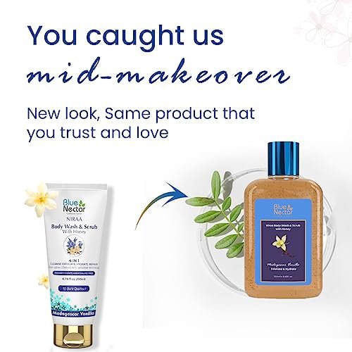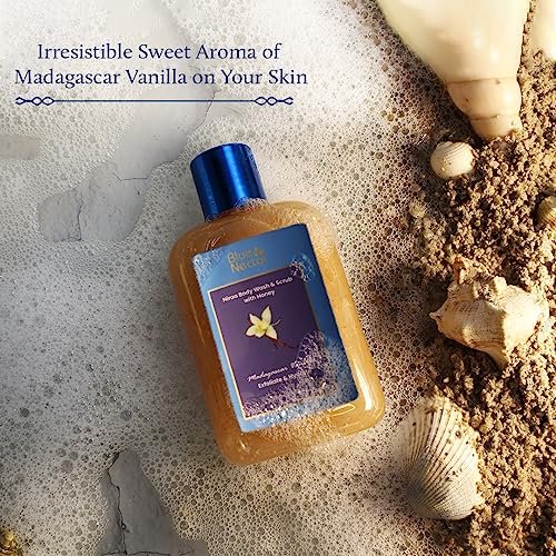 Blue Nectar Exfoliating Body Wash & Scrub for Rough & Bumpy Skin | Madagascar Vanilla Tan Removal Body Scrub for Women & Men (10 herbs, 250ml) – Fast Shipping to USA & Canada