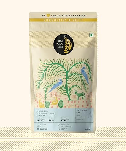 10 reviews for Blue Tokai Coffee Roasters Dhak Blend – Dark Roast (French Press Grind) 250g | Made With 100% Specialty Grade Arabica Freshly Roasted Ground Coffee, Bag – Fast Shipping to USA & Canada