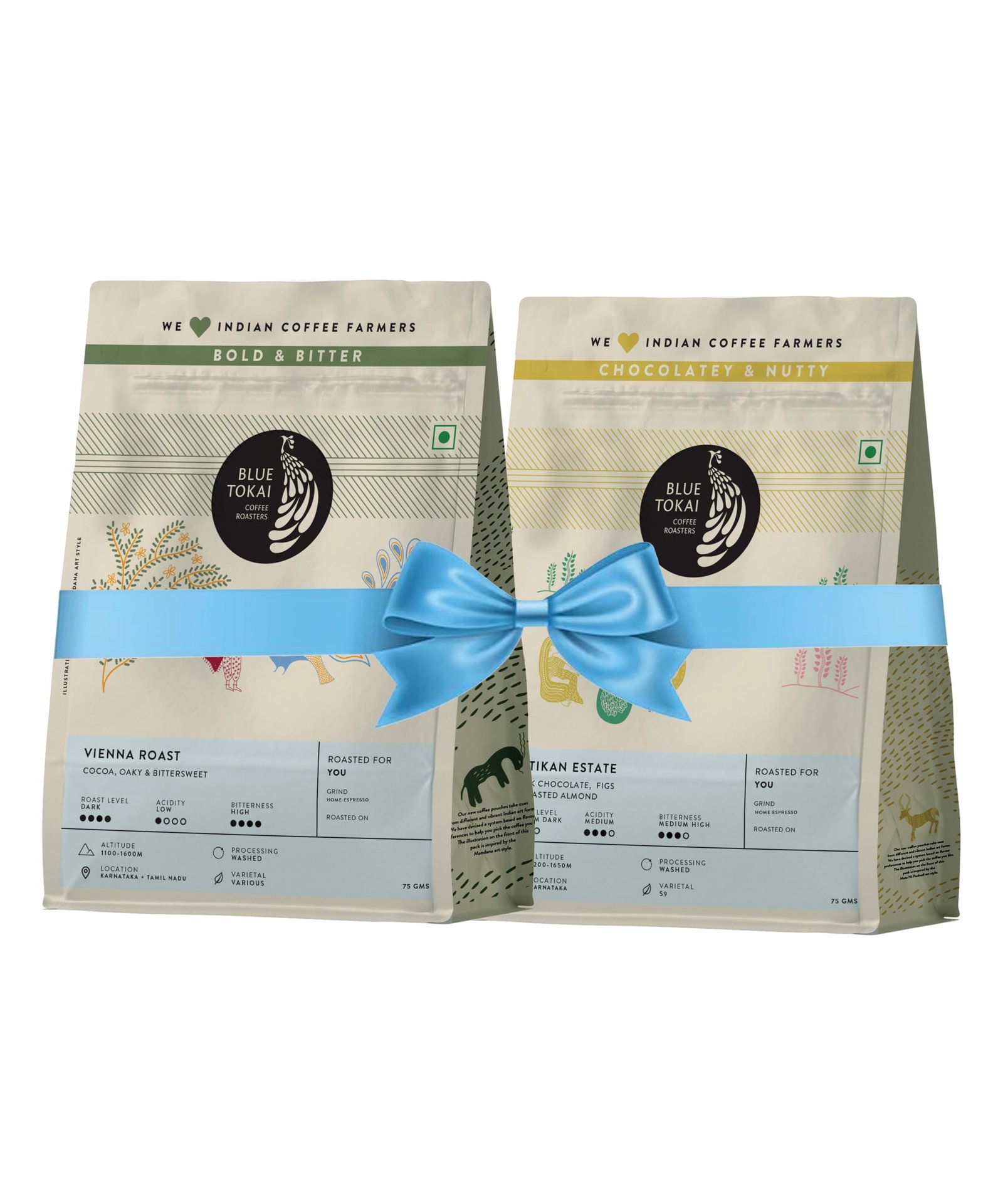 Blue Tokai Coffee Roasters Sampler Pack Attikan Estate -Medium Dark Roast & Vienna-Dark Roast | Home Espresso Grind | 100% Arabica Ground Coffee (75gm each, Pack of 2) – Fast Shipping to USA & Canada