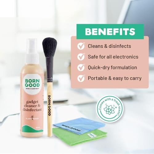 9 reviews for Born Good 4-in-1 Plant-Based Electronics & Gadget Disinfectant Cleaner Kit – Non-Toxic Formula for Laptop, Smartphone, Monitor, Tablet, Camera, TVs – 2 Microfiber Cloths & Soft Brush (100ml) – Fast Shipping to USA & Canada