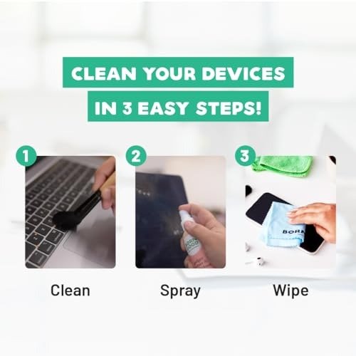 Born Good 4-in-1 Plant-Based Electronics & Gadget Disinfectant Cleaner Kit – Non-Toxic Formula for Laptop, Smartphone, Monitor, Tablet, Camera, TVs – 2 Microfiber Cloths & Soft Brush (100ml) – Fast Shipping to USA & Canada