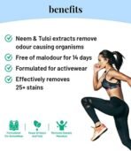 - REMOVES UNPLEASANT ODORS: Crafted with Neem and Tulsi extracts that eradicate odor-causing bacteria present in sweat. Ideal for athleisure and activewear garments. 2-WEEK LONG-LASTING FRESHNESS: This laundry detergent is scientifically designed and validated to maintain the freshness and cleanliness of activewear for up to two weeks.