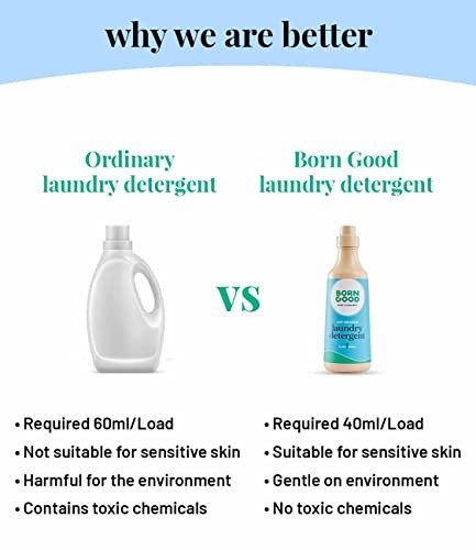 Born Good Plant Based Anti Microbial Laundry Detergent, Biodegradable, Non-Toxic And Eco-Friendly – 1 Ltr (Pack of 1) – Fast Shipping to USA & Canada