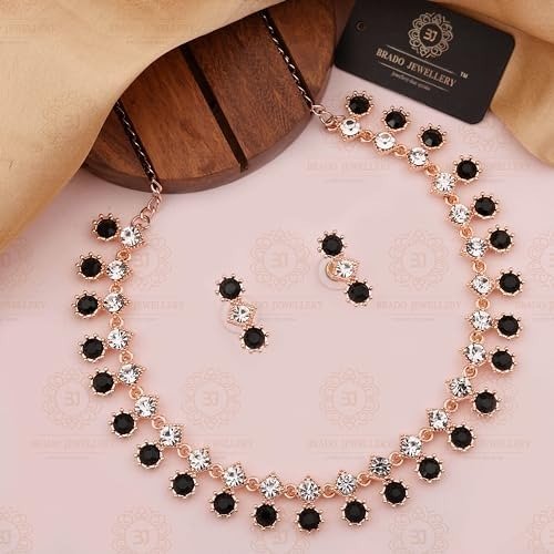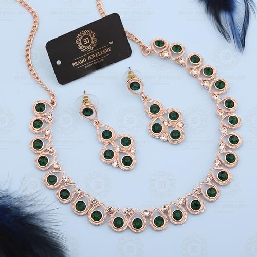 Brado 2 Rosegold AD Necklace Choker Set – Fast Shipping to USA & Canada