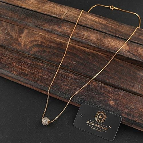 Brado Jewellery presents a stunning collection of gold-plated wedding jewelry, featuring a CZ solitaire golden chain necklace with an American diamond pendant, designed for women and girls. This necklace encompasses a diverse selection of wedding adornments, making it an essential addition to every woman’s jewelry collection. Its elegance and allure make it perfect for special wedding ceremonies and festive celebrations.