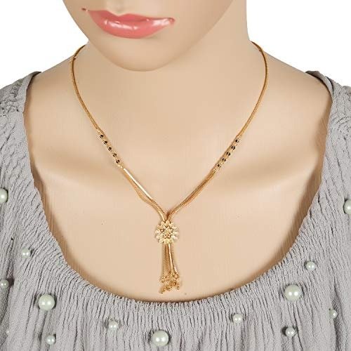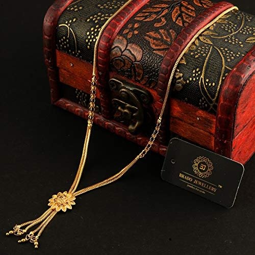 Our jewelry range is a harmonious fusion of tradition and modernity, exuding sophistication while retaining classic charm. It is suitable for women and girls of all ages. The Brado Gold Plated Necklace Mangalsutra showcases a timeless design embellished with American Diamonds. Today, women appreciate and wear designer imitation jewelry for its variety of designs and distinctive patterns, as it seamlessly complements their outfits for any occasion and enhances their remarkable personalities.