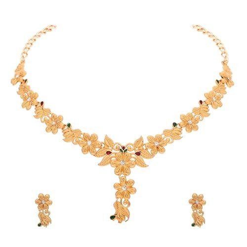 Product Details: – Plating: Gold Plated, Material: Brass, Necklace Color: Gold, Clasp Type: S Hook, Earring Style: Stud Earring, Dimensions: – Necklace Length: 40.64 cm, Earring Length: 2.54 cm.